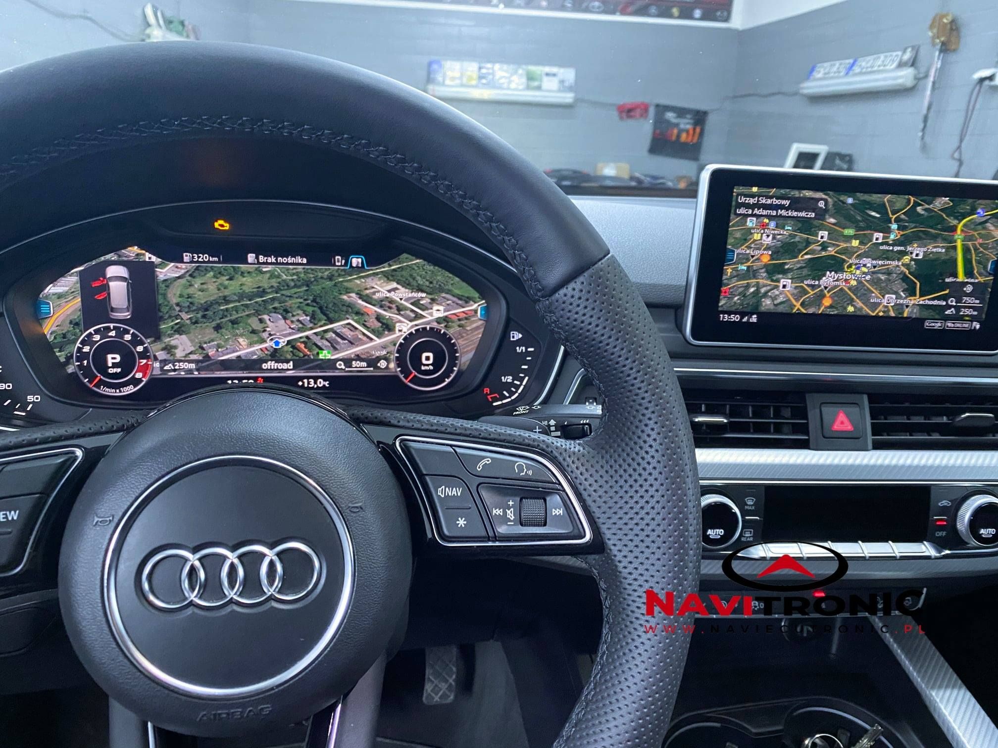 Zmiana wyglądu Virtualnego kokpitu na wersje z SQ7 Aktualizacja oprogramowania MMI Aktualizacja Mapy Europa 2021 Baza danych fotoradarów Europa Aktywacja dźwięku powitania